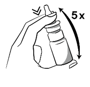 a) Actuate pump and keep it pressed while shaking the bottle vigorously five times up and down.