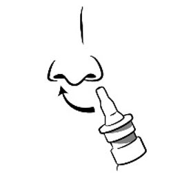 4 – Bend head slightly forward, insert spray tip as far as possible and hold bottle upright while breathing in slowly and actuating firmly once. Avoid drawing the gel further into your nose by sniffing during or after spraying.